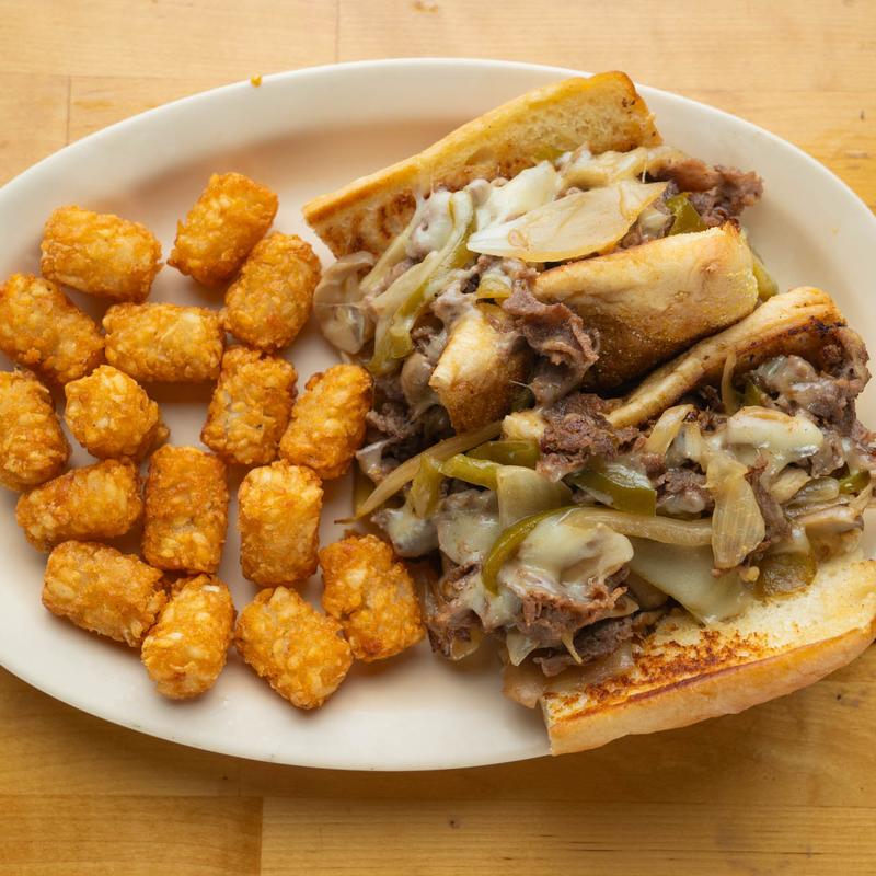 Steak or chicken grilled with peppers, onions, mushrooms, and cheese on an authentic philly roll.